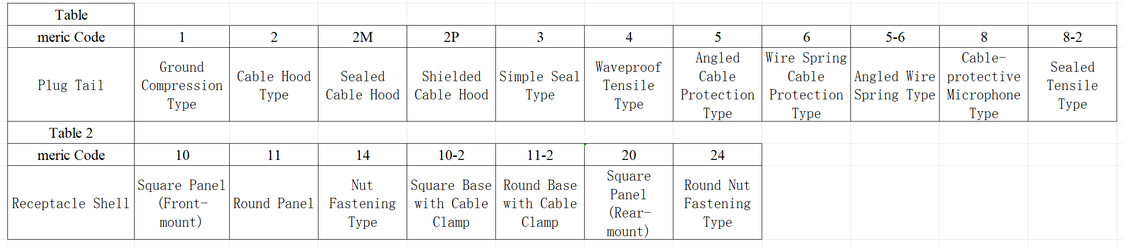 2—Main Designation Code for Circular Electrical Connectors