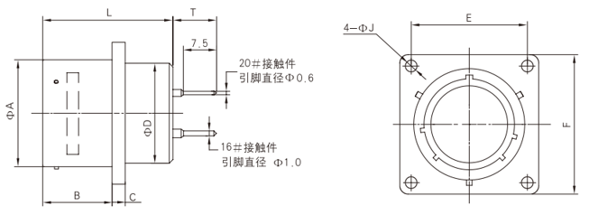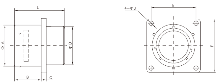 Box-Type Square Panel Mount Receptacle (Type B):JY3112B