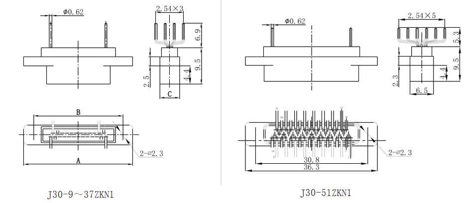J30-9、15、21、25、31、37、51ZKN1 (Socket)