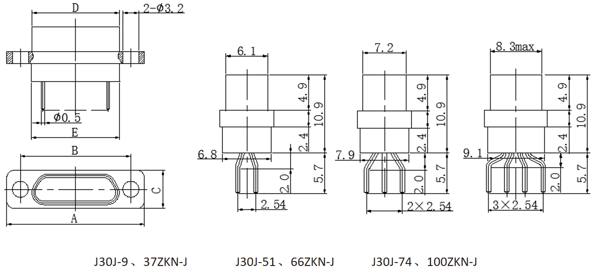 J30J-9 、15、21、25、31 、37、51ZKN-J (Socket)