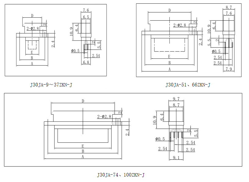 J30JA-9、15、21 、25、31 、37、51 、66、74、100ZKN-J (Socket)