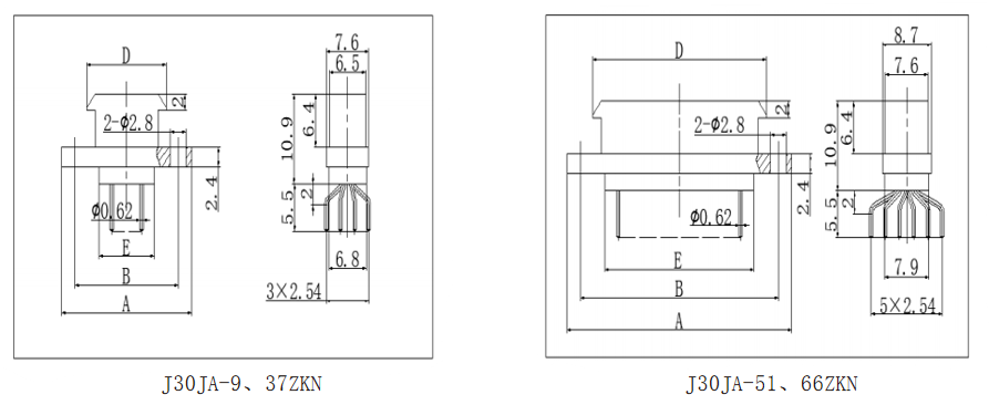 J30JA-9、15、21、25、31、37、51、66ZKN (Socket)