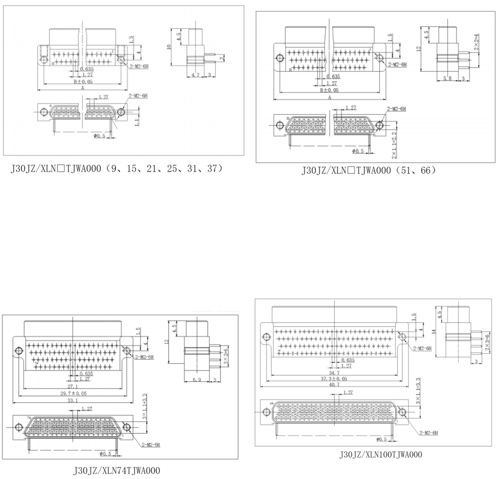 J30JZ/X Right-Angle PCB Mount Type: J30JZ/XLN□TJWA000