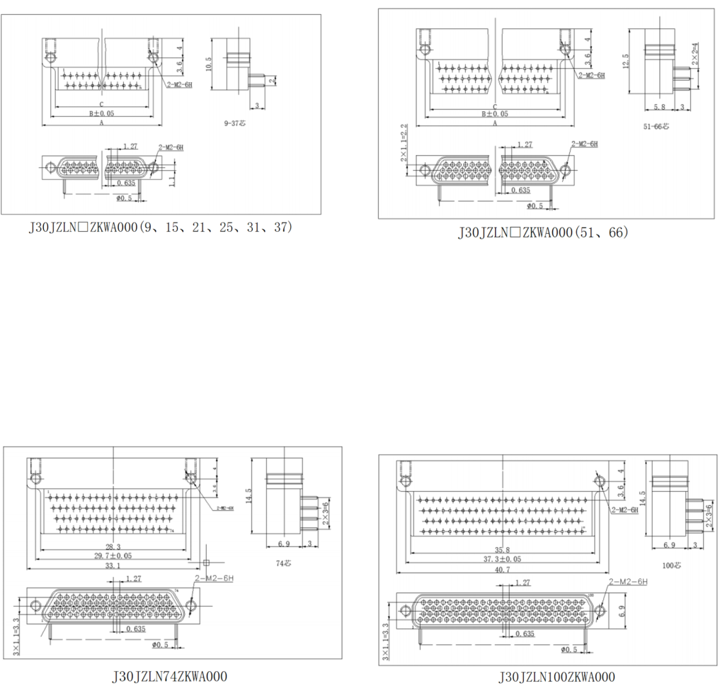J30JZ Straight PCB Mount Type: J30JZLN□ZKWA000