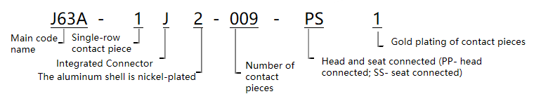 The models at both ends of the connector are marked according to the product name. If you order J63A-1J2-009-PS1, both the plug and socket models are marked as J63A-1J2-009-PS1.