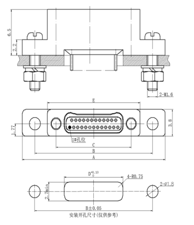 This connector is equipped with guide holes and is generally used in conjunction with plugs with guide posts.
