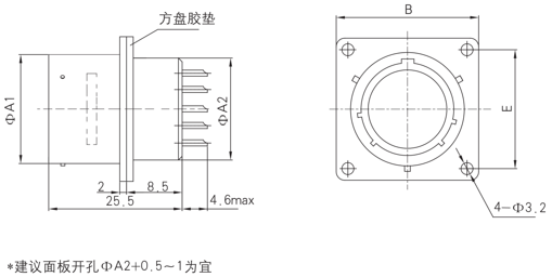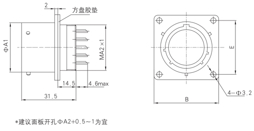 XCE-S1-M Square Panel-Mounted Wall-Mounted Hermetic Socket (Jacks Outside the Panel, Pins Inside)