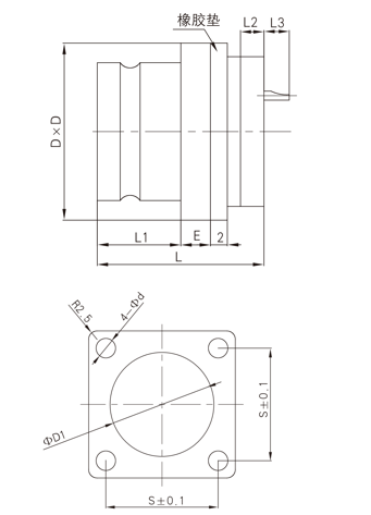 Overall and Mounting Dimensions of Square Flange-Mounted Rubber-Sealed Socket